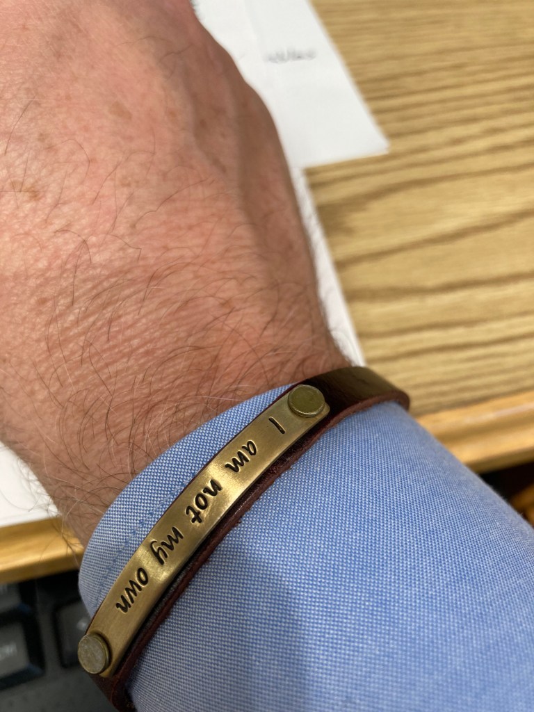 On the other hand, my right arm, I wear a bracelet that says, “I am not my own.” I wear it in such a way that when I reach out to shake someone’s hand and greet them they will be able to read it. It is meant as a humble confession that I have surrendered and belong to someone greater than myself.