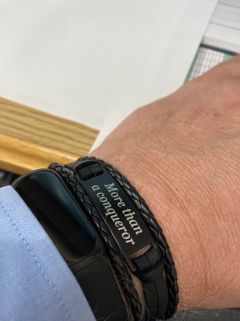 On my left arm I wear a bracelet that says “more than a conqueror”. That is a bold statement and might come off as prideful and arrogant. But, I wear it in such a way that when I look at it I can read it. It’s not a proclamation to others who I meet and greet, but a reminder to me in my dark and weak moments that in Christ, I have nothing to fear and nothing can overcome me.